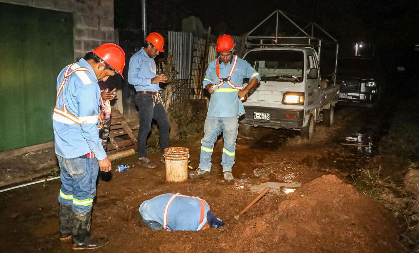 #Nacional l ANDA ejecutó reparación de tubería en el pasaje dos de la lotificación Bosques de Santo Domingo en el distrito de Guazapa, San Salvador Norte.