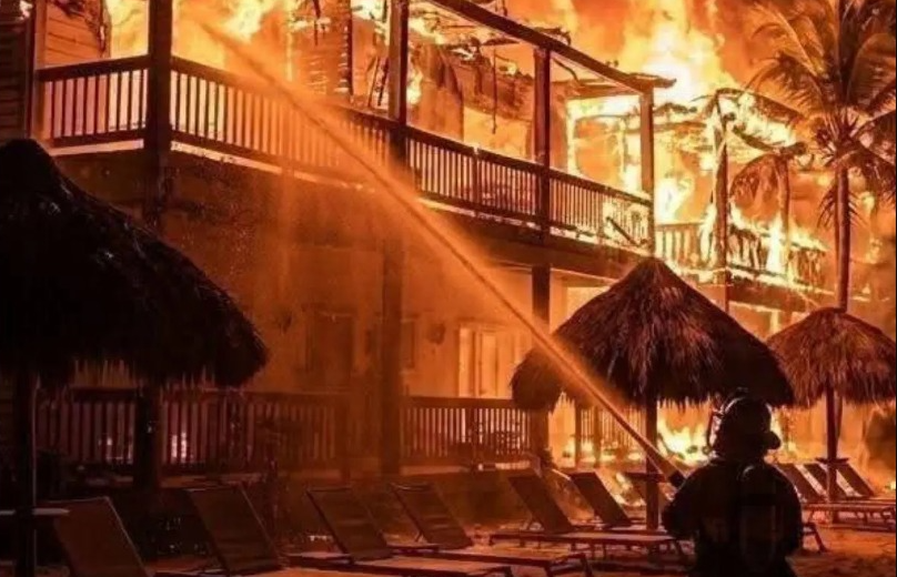 #Internacional | Anoche, un incendio estructural consumió entre 35 % y 40 % del Hotel Fantasy Island Beach Resort en Roatán, Honduras.
