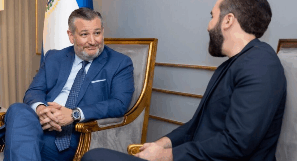 El senador republicano Ted Cruz se reunió con el presidente Bukele para analizar las tácticas antiterroristas utilizadas en el país y su éxito en la reducción de homicidios.