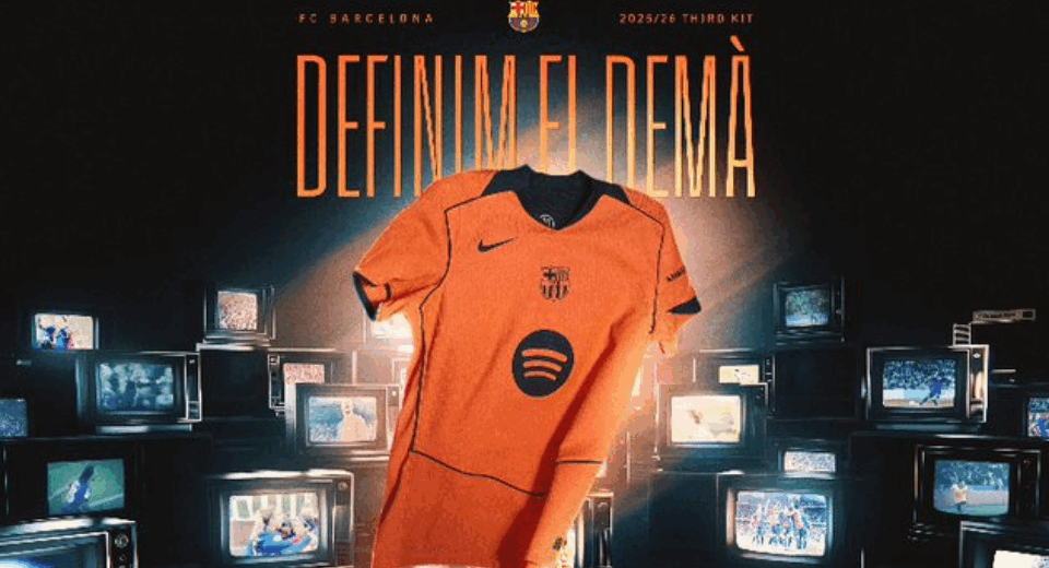 El FC Barcelona presenta su nueva tercera equipación, inspirada en el sextete de 2009, con un llamativo color “mango brillante” y detalles en azul marino.