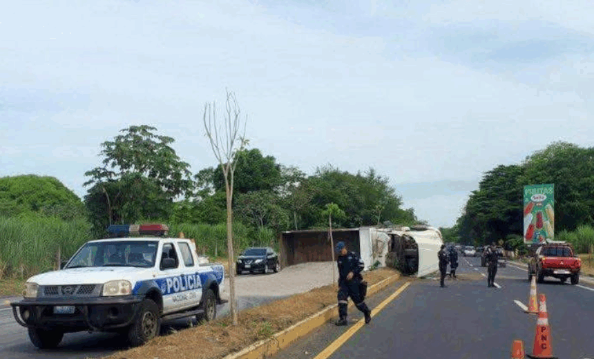 #Nacional l Un camión que transportaba material de construcción volcó en el km 119 del by pass de Usulután. No se reportaron lesionados.