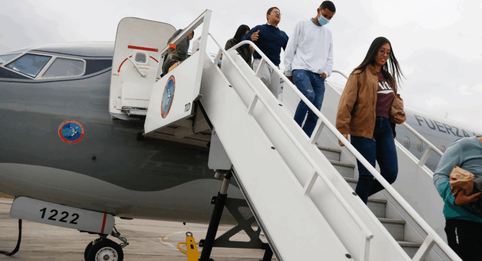 EE.UU. realiza primer vuelo de autodeportados con 64 inmigrantes que regresaron voluntariamente a Honduras y Colombia bajo nuevo programa.