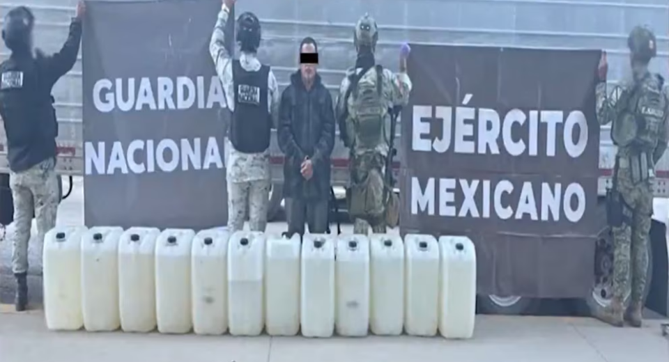 La FGR informa que un hombre fue vinculado a proceso y enviado a prisión preventiva por transportar metanfetamina líquida en Ensenada.