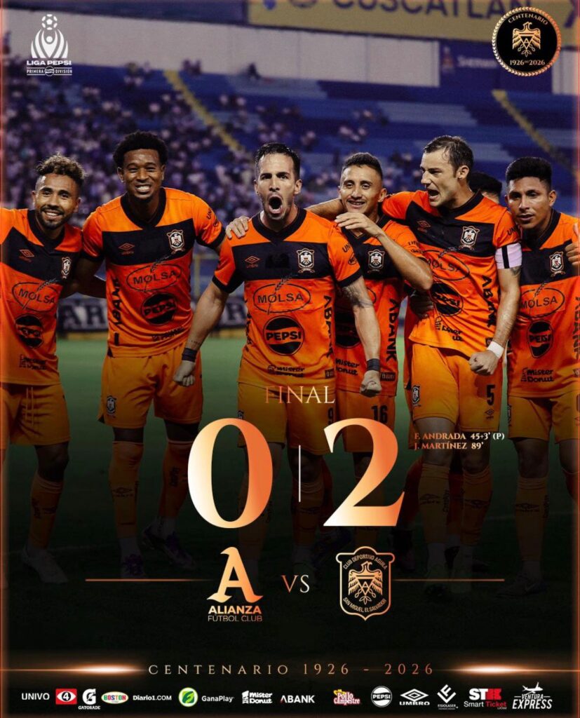 Águila se impuso 2-0 sobre Alianza en el estadio Cuscatlán, en el marco de la jornada 19 del torneo Clausura 2026, en un partido donde el equipo migueleño concretó sus oportunidades y controló el desarrollo en momentos clave.