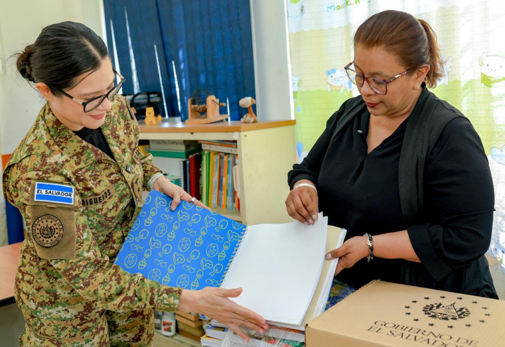 La ministra de Educación, Karla Trigueros, supervisó la distribución de los insumos, que incluyen materiales adaptados para estudiantes con ceguera o baja visión. De acuerdo con la funcionaria, los paquetes contienen útiles escolares, dos uniformes y recursos diseñados para apoyar el aprendizaje tanto de los estudiantes como de sus familias.