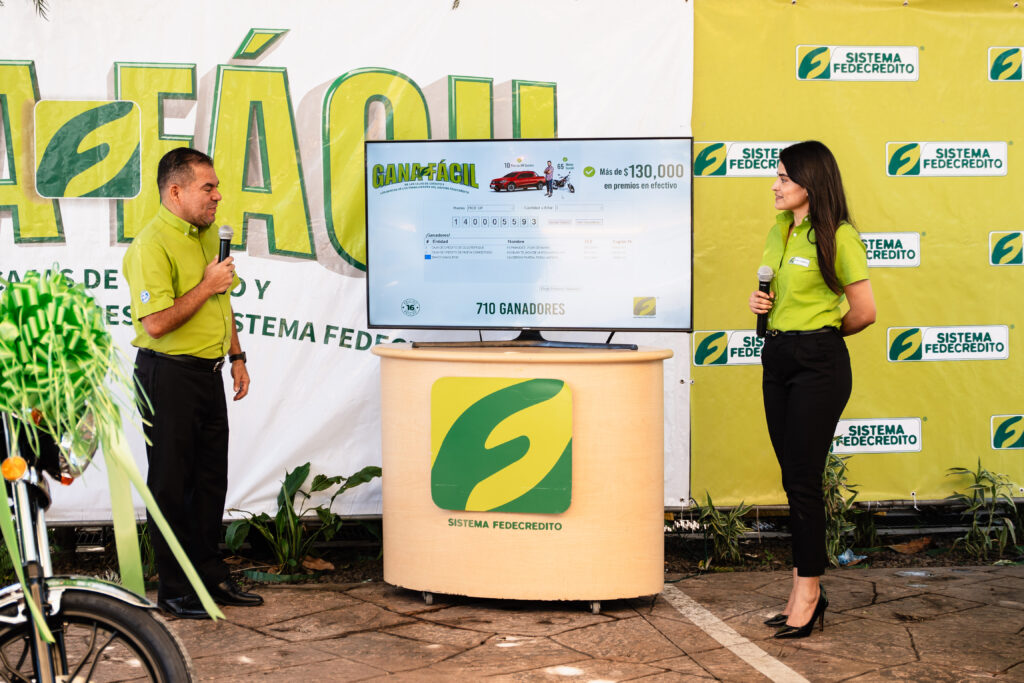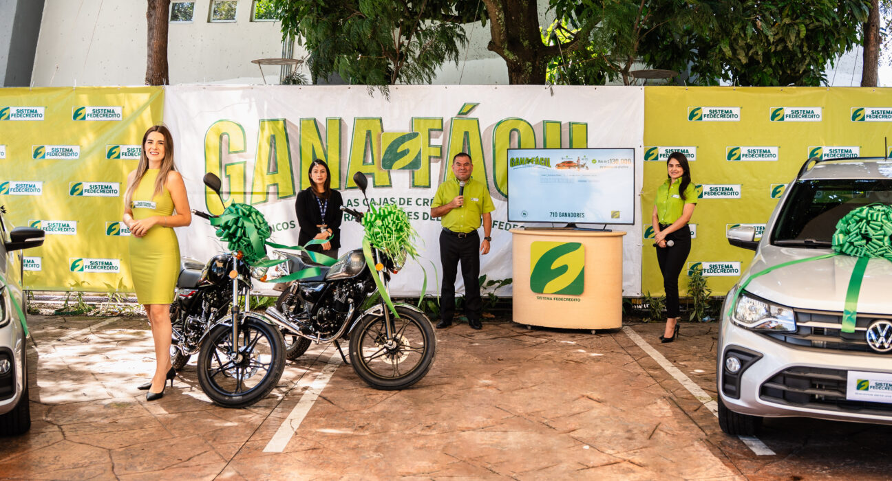 El Sistema Fedecrédito llevó a cabo el primer sorteo de la promoción Gana Fácil, en el que 228 socios y clientes fueron seleccionados como ganadores de diversos premios, entre ellos tres pick up Volkswagen Saveiro, 20 motocicletas Suzuki y 205 premios en efectivo que van desde los $100 hasta los $500.