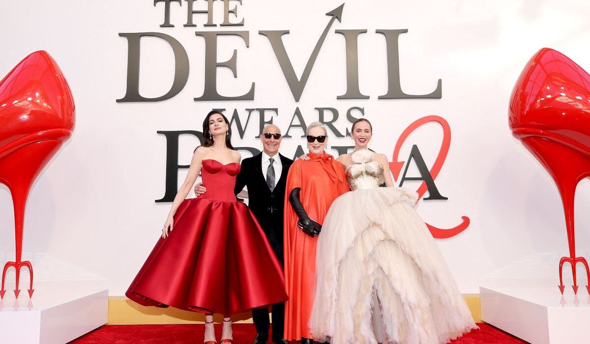 Durante la premiere, Streep apareció con un vestido-capa naranja, mientras Hathaway optó por un diseño rojo de satén. Blunt asistió con un atuendo de capas de tul y Tucci con un traje oscuro.