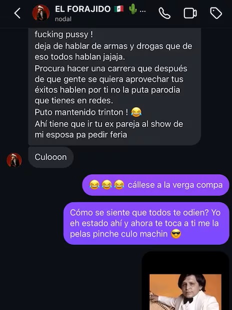 En medio de este tenso ambiente, Emiliano compartió un mensaje en Instagram del cantante Christian Nodal, donde el mexicano le pedía dejar de hablar de su familia y concentrarse en construir su propia carrera. El mensaje de Nodal, que fue calificado por Emiliano como insultante, incluía expresiones como “Fucking pussy” y “P*to mantenido”, además de hacer referencia al dinero que Emiliano recibe de su padre y criticando su presencia en las redes sociales.