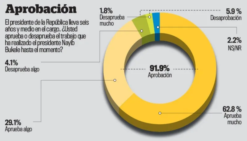 91.9 % de la población aprueba la gestión de Bukele tras seis años y medio en el poder
