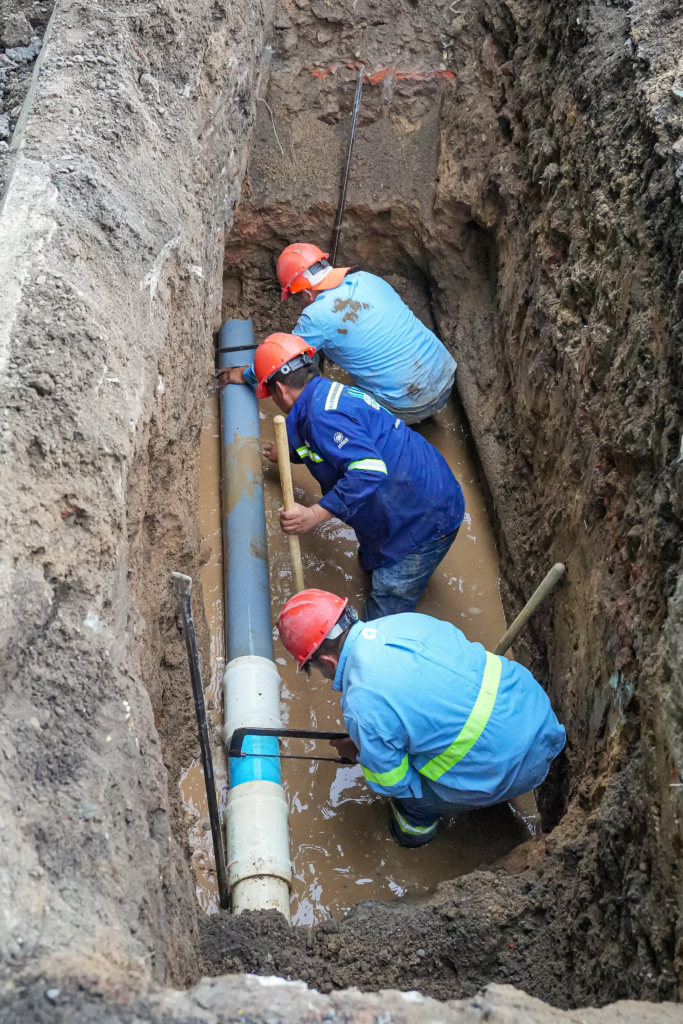 Según detalló ANDA, la tubería afectada se encontraba a más de dos metros de profundidad. El personal retiró material acumulado hasta ubicar el punto exacto de la fuga, el cual correspondía a una tubería de PVC de seis pulgadas de diámetro. Posteriormente, se procedió al corte de la sección dañada para comenzar los trabajos de reparación y sustitución.