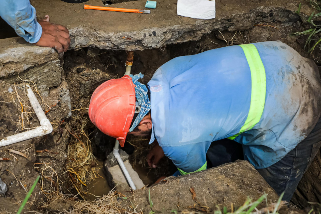 De acuerdo con ANDA, los trabajos incluyeron excavación y remoción de cemento, tierra y agua, con el fin de ubicar con precisión el punto de la fuga y proceder con su reparación en una tubería de media pulgada.