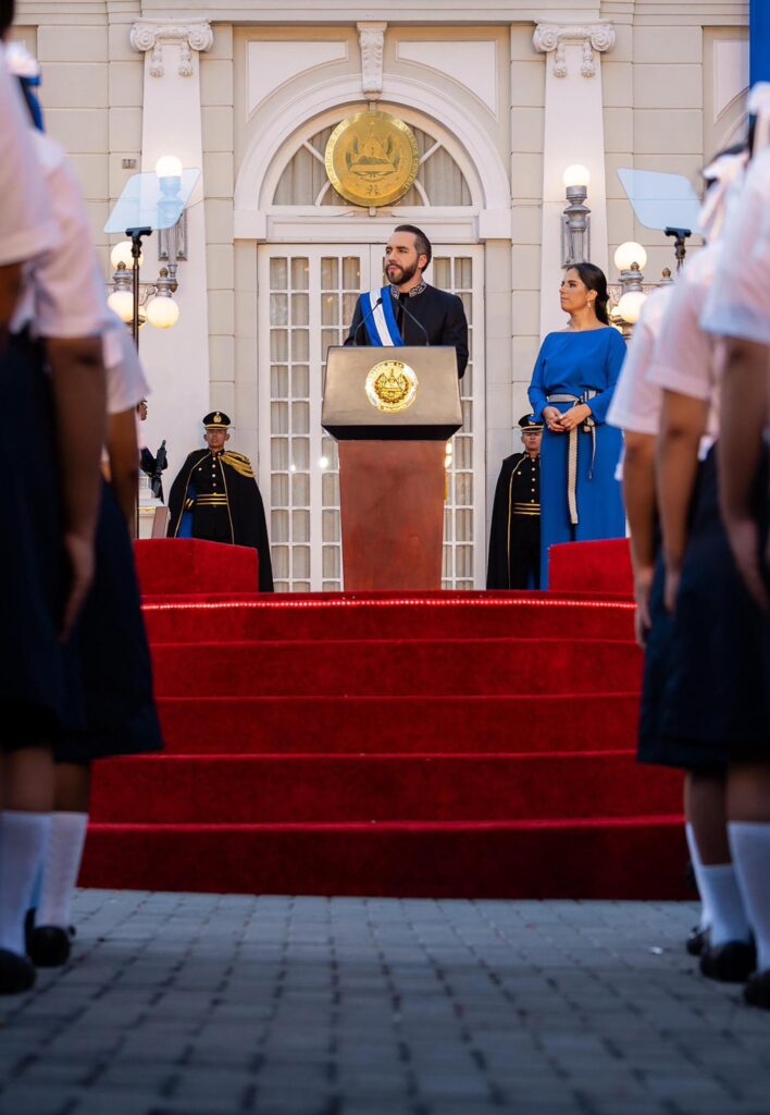 “Hoy vi un video de unos niños y unos jóvenes del Centro Escolar Los Toles, en Ahuachapán; desfilando impecables, nítidos, y eso que iban sobre una calle de tierra, que además por la lluvia se había hecho lodosa”, expresó el mandatario.