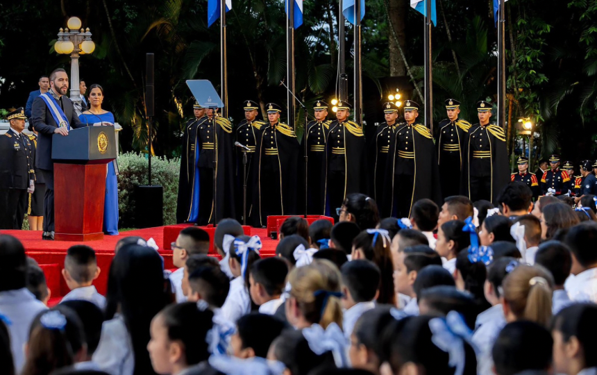 “Hoy vi un video de unos niños y unos jóvenes del Centro Escolar Los Toles, en Ahuachapán; desfilando impecables, nítidos, y eso que iban sobre una calle de tierra, que además por la lluvia se había hecho lodosa”, expresó el mandatario.