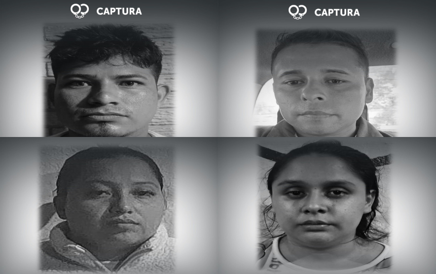 Los capturados fueron identificados como Ever Mauricio Reyes Lazo, Vanessa Abigail Cortez Segovia, Jennifer Alexander López Gálvez y Melvin Javier Hernández Colón.