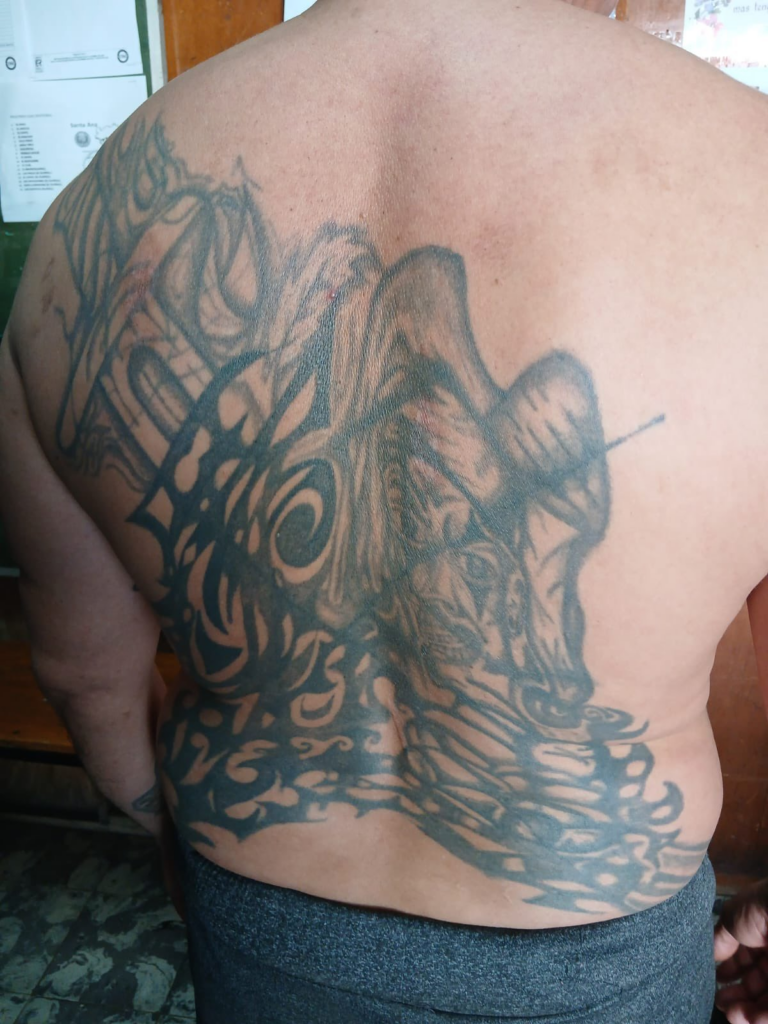 De acuerdo con la PNC, Sánchez Flores es identificado como “homeboy” de la 18 Sureños y, dentro de la estructura, tenía la función de extorsionar a comerciantes y trabajadores. Además, señaló que el detenido habría intentado ocultar tatuajes vinculados a la pandilla mediante otros diseños.