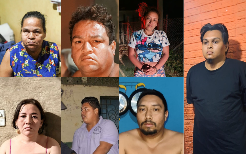 Entre los detenidos se encuentran José Amílcar Flores, María Lorena Fuentes, Kenia Leticia Sánchez Fuentes, Carlos Alexis Sánchez Arévalo, Jessica Elizabeth Chicas Gutiérrez, Marvin Alexis Fuentes Flores y José Luis Ramos Díaz.