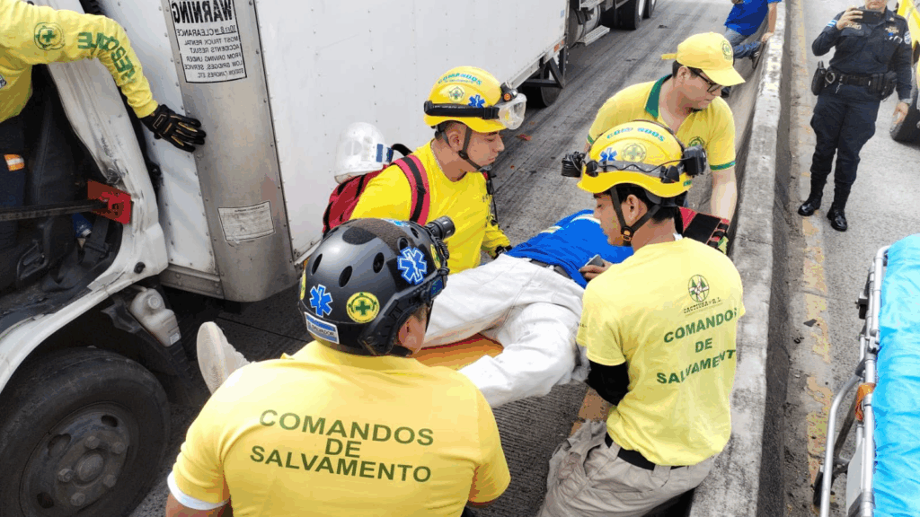 El percance involucró al menos dos vehículos pesados y un camión. De acuerdo con la información preliminar, dos personas que viajaban en el camión resultaron lesionadas y fueron trasladadas a un centro asistencial para recibir atención médica.