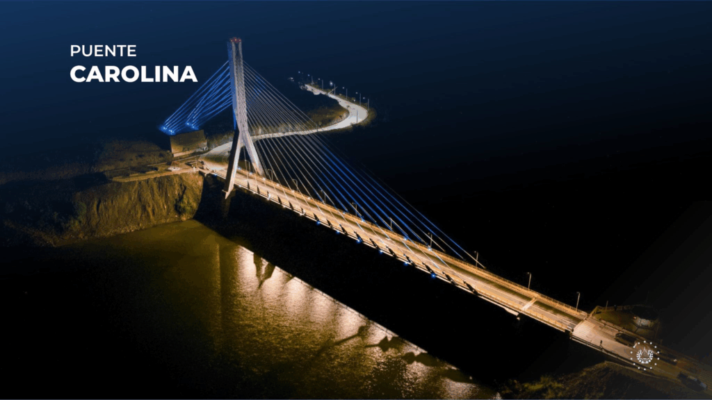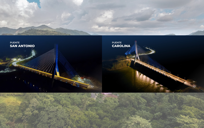 El puente San Antonio tiene 157 metros de longitud, mientras que el Carolina alcanza los 179 metros. Ambos cuentan con dos carriles vehiculares, aceras peatonales protegidas, miradores, plazas turísticas e iluminación arquitectónica LED.