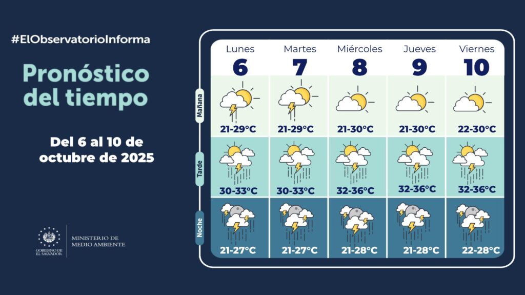 “En esta semana tendremos lluvias por las mañanas el lunes y martes, y de miércoles a viernes por la tarde y la noche. Todos los días va a llover”, explicó el ministro, quien además señaló que el Gobierno mantiene un monitoreo constante de todos los sistemas meteorológicos para anticiparse a posibles riesgos.