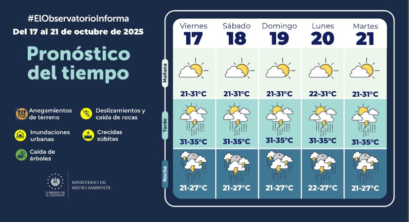 Según el MARN, en los próximos días se prevén lluvias vespertinas y nocturnas, acompañadas de ráfagas de viento y actividad eléctrica, lo que mantiene el riesgo de inundaciones urbanas, deslizamientos, caídas de árboles y crecidas súbitas.