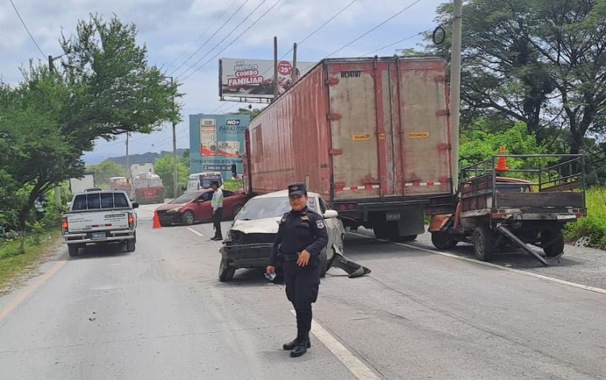 Un múltiple accidente de tránsito se registró este viernes en el kilómetro 32 de la autopista Comalapa, en el municipio de Olocuilta, La Paz Oeste, dejando una persona lesionada, según el informe preliminar de la PNC.