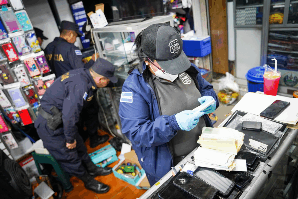 La Fiscalía General de la República, con apoyo de la Policía Nacional Civil, ejecutó esta tarde un operativo en el Centro Histórico de San Salvador para detener a varios comerciantes señalados de adquirir teléfonos celulares, tablets y otros dispositivos electrónicos obtenidos mediante robos y hurtos, según información oficial.