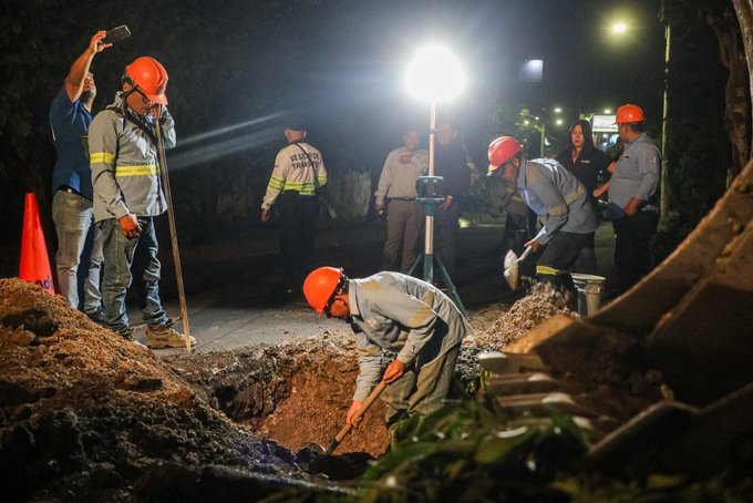 “Esta es una reparación programada, los trabajos se ejecutan durante la noche para interferir lo menos posible en el tráfico de esta zona. Nos auxiliamos del Ministerio de Obras Públicas para manejar el tránsito vehicular y traemos maquinaria pesada, porque a veces la fuga está muy profunda y es necesario excavar para poder hacer la reparación”, explicó el presidente de ANDA, Dagoberto Arévalo.