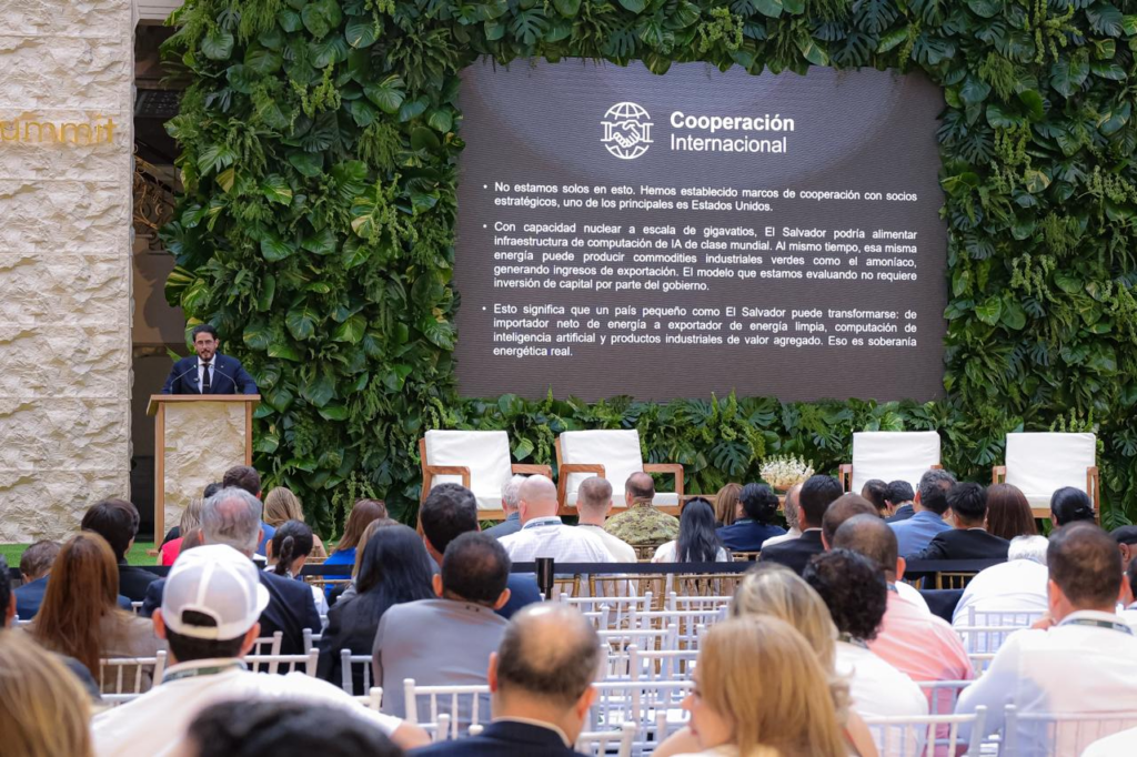 Durante su intervención, Álvarez planteó que el país podría avanzar hacia la exportación de energía limpia y servicios vinculados a la computación basada en inteligencia artificial. “El Salvador puede transformarse de importador neto de energía a exportador de energía limpia, computación de inteligencia artificial y productos industriales de valor agregado”, señaló.