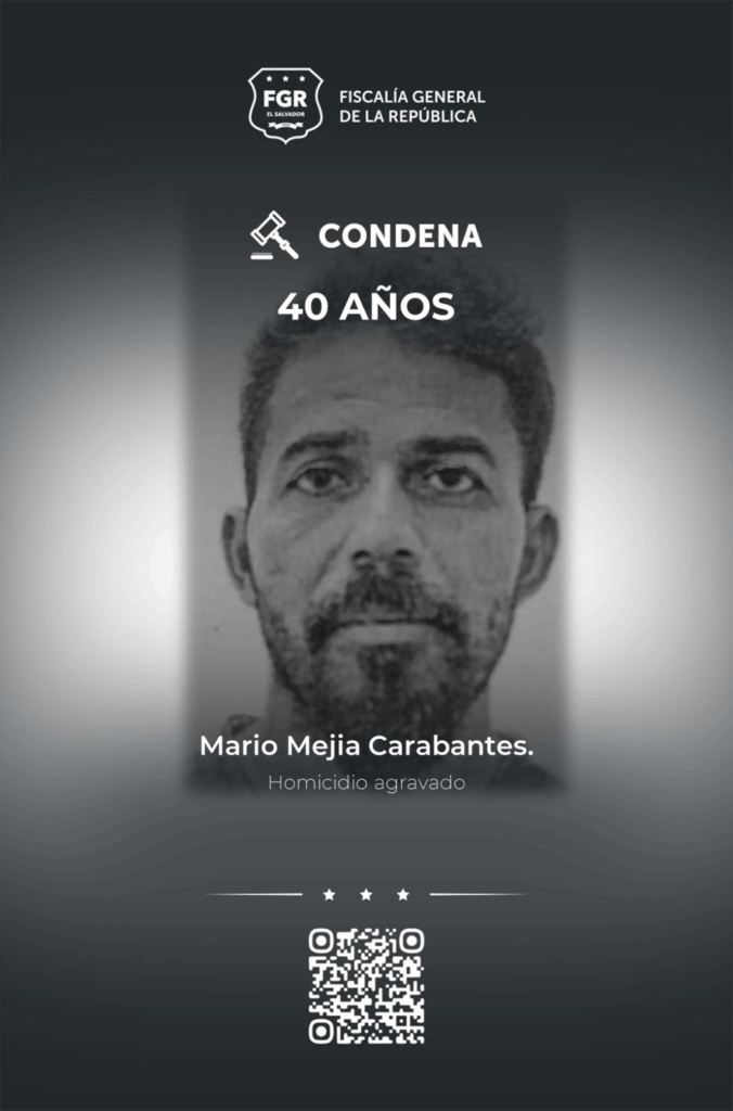 El Juzgado Especializado de Sentencia para una Vida Libre de Violencia y Discriminación para las Mujeres de Santa Ana impuso una condena de 40 años de internamiento a Mario Mejía Carabantes, declarado responsable del delito de homicidio agravado.