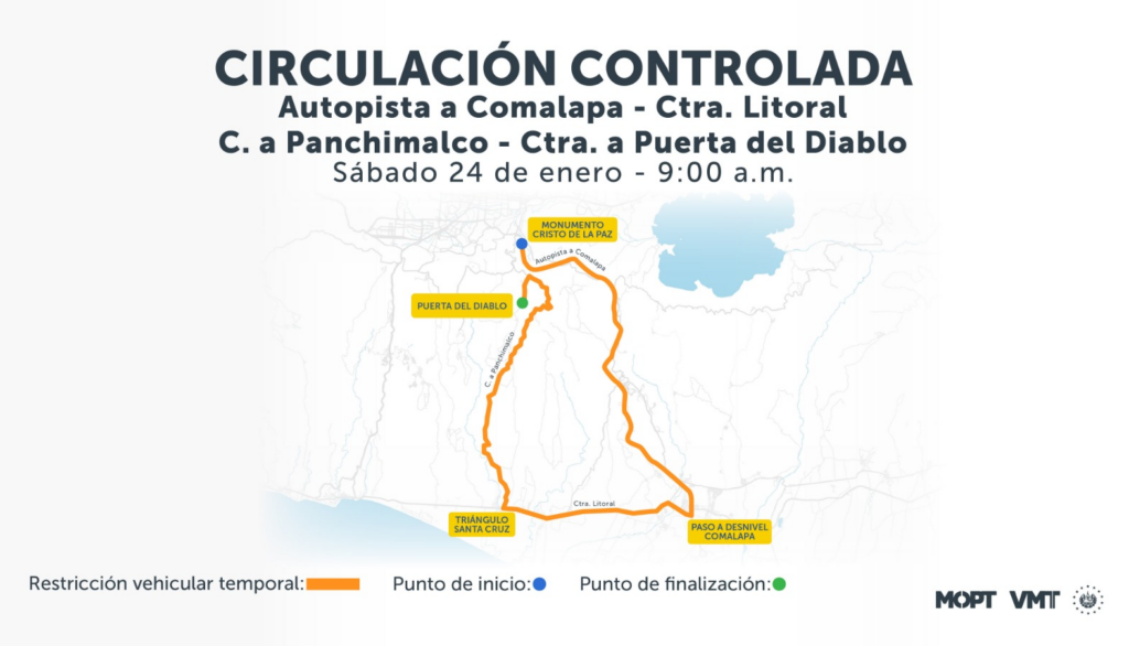 Tour El Salvador 2026 generará restricciones vehiculares temporales del 17 al 31 de enero
