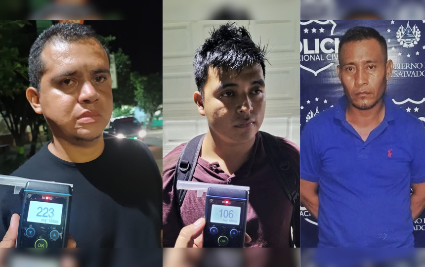 La Policía Nacional Civil (PNC) informó la detención de tres hombres por conducción peligrosa en diferentes puntos del país, tras ser detectados manejando bajo los efectos del alcohol.