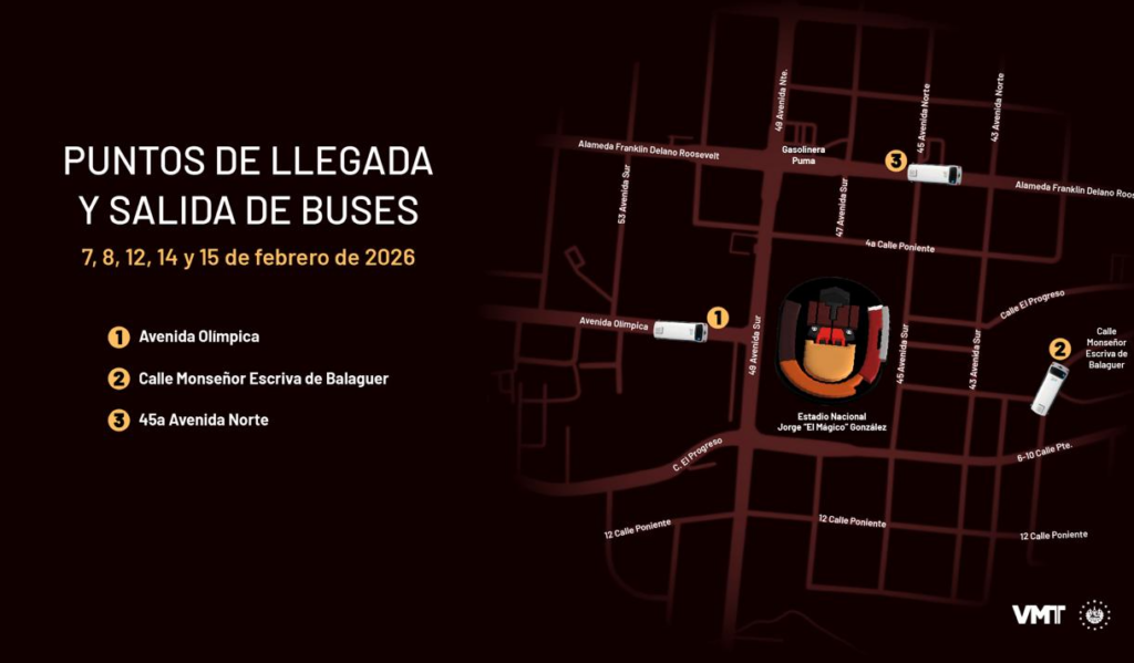 El Viceministerio de Transporte (VMT) informó sobre los dispositivos de gestión del tránsito vehicular y la circulación peatonal que se implementarán durante la residencia de cinco conciertos que la artista colombiana Shakira realizará en el estadio Jorge “El Mágico” González, en San Salvador.