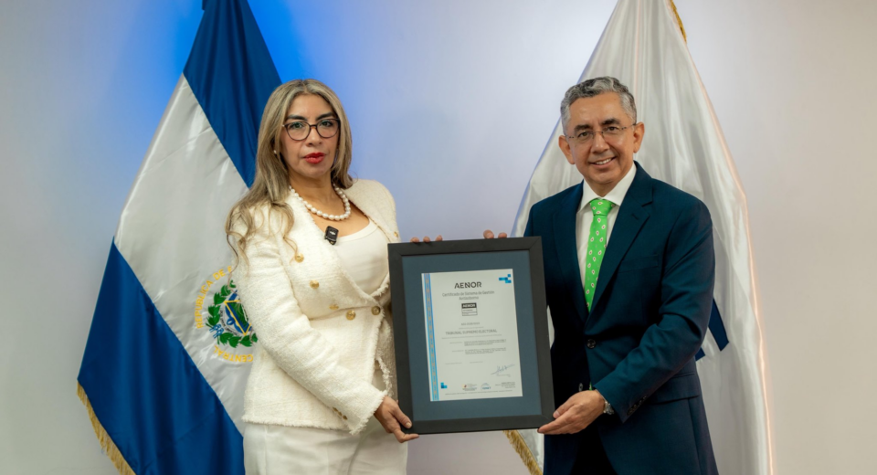 La presidenta del TSE, Roxana Soriano, recibió certificaciones de AENOR e IQNET por implementar el sistema antisoborno bajo la norma ISO 37001.