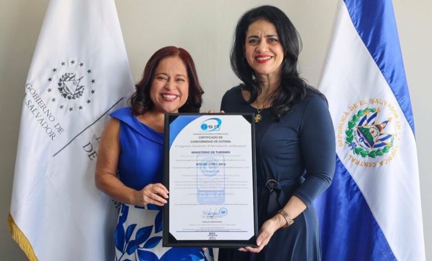 #Nacional l El Ministerio de Turismo de El Salvador recibió la certificación internacional ISO 37001 por su sistema de gestión antisoborno, informó la institución.