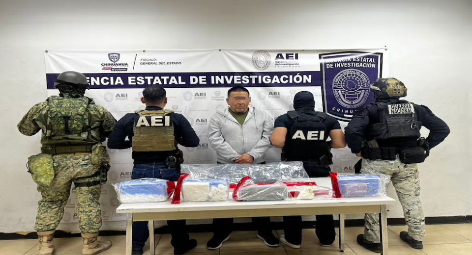 Autoridades detienen en Ciudad Juárez a un hombre con fentanilo, metanfetamina y cocaína; el caso queda a disposición del MP federal.